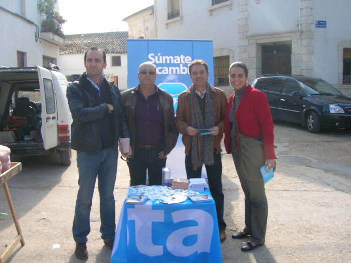 La candidata al Senado Belén Torres, junto con el diputado regional Antonio Martínez; el diputado provincial de Cultura, Fermín Gómez, y el alcalde de Fuentealbilla, Ángel Salmerón, participaron en la mesa informativa de dicha localidad con el fin de hacer llegar a todos los ciudadanos el mensaje del Partido Popular, bajo el lema 'Súmate al cambio'.