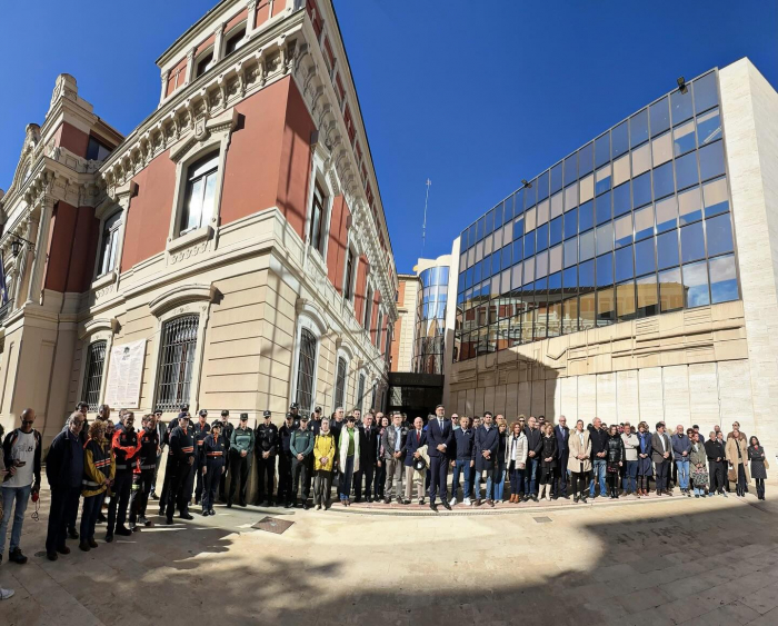 En la mañana de hoy se ha guardado un respetuoso minuto de silencio en la puerta de la diputación provincial de Albacete, en solidaridad con los fallecidos y afectados por la DANA que ha provocado lluvias torrenciales e inundaciones en provincias como Albacete y Valencia.