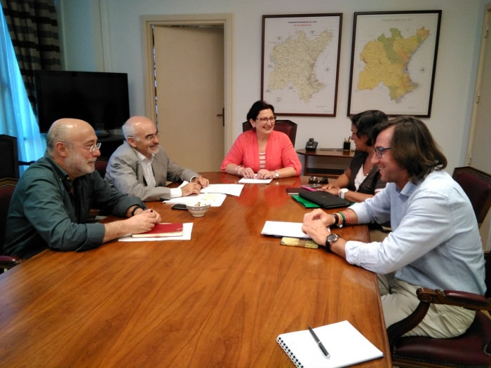 La alcaldesa de Alpera, Cesárea Arnedo, junto con el alcalde de Ayora, José Vicente Anaya, se han desplazado a la sede de la Confederación Hidrográfica del Júcar, en Valencia, donde han expuesto a la presidenta María Ángeles Ureña y el comisario de Aguas, Javier Ferrer, los problemas que acarrearía la instalación de una macrogranja porcina en sus términos municipales.