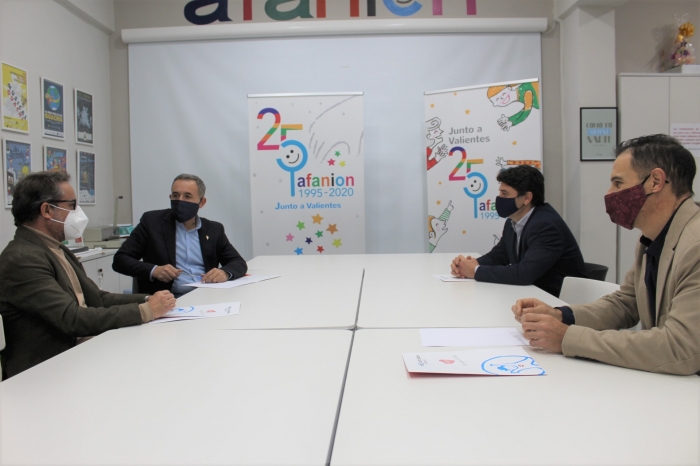 Así lo ha hecho Antonio Martínez en su encuentro con el presidente de AFANION, Juan García Gualda y el vicepresidente Antonio Acebal Miñano, en la sede de la calle Cristóbal Lozano de Albacete, en la que también ha participado el viceportavoz del Grupo Popular, Francisco Navarro, cuando se cumplen este mes de diciembre 25 años desde la fundación de esta asociación sin ánimo de lucro que presta atención y ayuda a los niños que sufren cáncer y a sus familias.