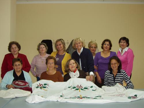 La portavoz del Grupo Municipal Popular, Carmen Bayod, acompañada de la concejala Maravillas Falcón, visitaron las aulas de trabajo de las mujeres del barrio Parque Sur, En la imagen visitando el aula de manualidades y labores de la Universidad Popular con su profesora, Loli Requena y alumnas del mismo.
