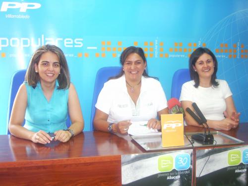 La Diputada Regional, Cesárea Arnedo, acompañada de las concejales locales Amalia Gutiérrez y Belén Torres, ha ofrecido una rueda de prensa en Villarrobledo, con el fin de informar lo acontecido en el último Pleno Extraordinario de las Cortes Regionales relativo a la financiación económica a nivel estatal.
