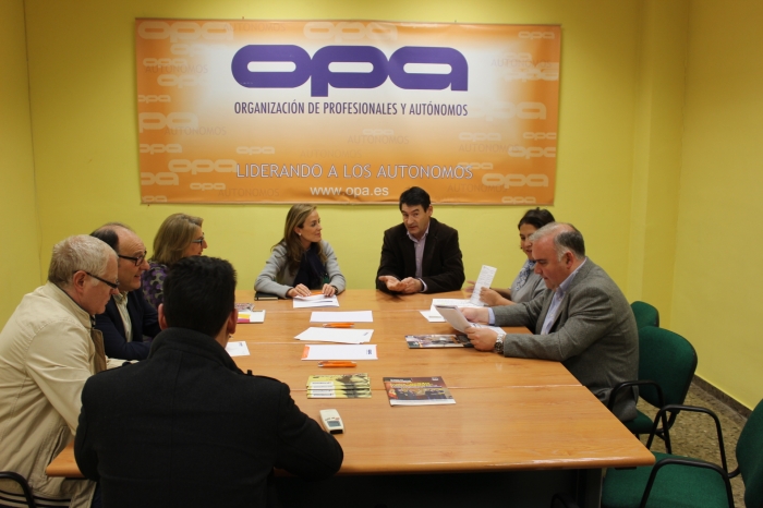 La cabeza de lista del PP al Congreso de los Diputados, Carmen Navarro, ha informado a la directiva de la Federación de Profesionales Autónomos y Emprendedores (OPA), sobre el programa económico del Partido Popular, y ha trasladado su apoyo a uno de los sectores básicos del tejido productivo de nuestra provincia, que son junto con las pymes, los que generan el noventa por ciento del empleo que se genera en España. En la reunión mantenida en la sede de OPA de la calle Obispo Tagaste de la capital, también han participado la secretaria provincial del PP, Cesárea Arnedo, y el viceportavoz del Grupo Popular en la Diputación Provincial, Constantino Berruga.