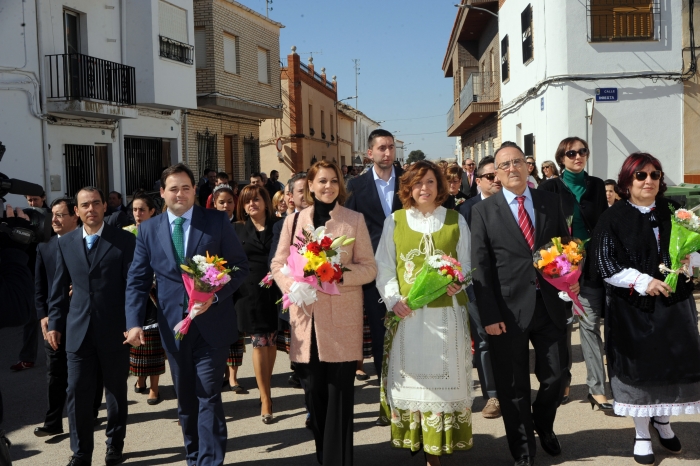 Cospedal, en la procesión de Navas de Jorquera, acompañada por el presidente del PP de Albacete, Francisco Núñez, y cargos públicos del Partido Popular.