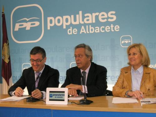 Marcial Marín, Ramón Aguirre y Carmen Bayod, en la sede del PP.