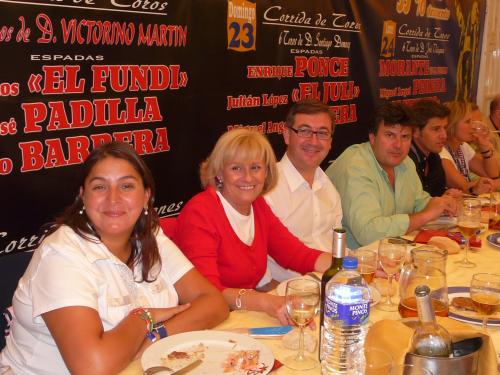 La comida ha tenido lugar en la caseta de ?la rebotica? donde se han reunido representantes de todos los medios de comunicación de Albacete con los dirigentes del Partido Popular.