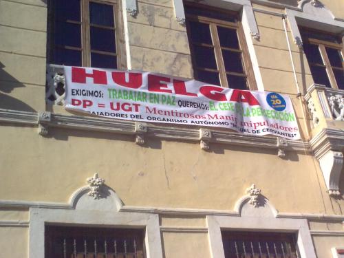 Del mismo modo, el Alcalde está en la obligación de investigar el reparto de unos pasquines informando de la huelga. No queremos ni tan siquiera pensar que para su impresión o buzoneo se hayan usado fondos públicos; sin embargo, sí tenemos constancia de que varios trabajadores del Organismo Autónomo 'Miguel de Cervantes' han repartido dichos pasquines despacho por despacho en horas laborables.