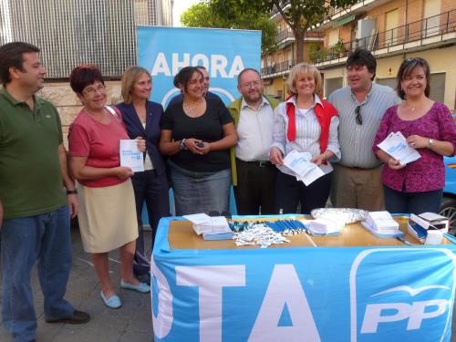 La Portavoz del Grupo popular en el Ayuntamiento Carmen Bayod y el Senador del PP Dimas Cuevas, acompañados por Concejales y diputados de su partido, han participado en la mesa informativa que el Partido Popular ha puesto en la tarde de hoy en el Bario del Ensanche.