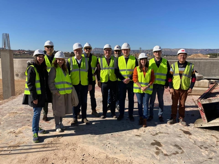 El alcalde de Almansa, Javier Sánchez Roselló, la concejala de Urbanismo e Infraestructuras, Tania Andicoberry y el concejal del Ciclo Integral del Agua, Longinos Marí, junto al responsable del proyecto de la Depuradora, Diego Irles, el director técnico, Manuel Torán, y los responsables de la UTE Lantania-CHM, visitaban la evolución de las obras de la nueva depuradora de Almansa.