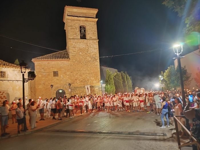 El pasado 25 de agosto, a las 22:30 de la noche y tras el chupinazo, se ponían en marcha en Balazote la carrera de antorchas 2023, celebrada con motivo de la Romería de Santa Mónica y que ha supuesto la vuelta después de 15 años a la celebración de una tradición muy querida por todos los vecinos. Más de 500 balazoteños, vestidos de blanco y con fajín rojo y portando antorchas, tal y como manda la tradición, realizaron un recorrido que partió de la Iglesia Nuestra Señora del Rosario, pasando por diferentes puntos significativos del municipio como la Cruz de Jesús el Nazareno y la Calle Santa Mónica.
