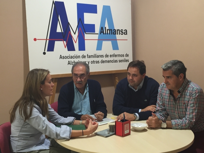 Carmen Navarro y Paco Núñez han acompañado al presidente local del PP de Almansa , Ramón Rodríguez, y al responsable local de Política Social, José Antonio Gil, en la visita al Centro de Día de la Asociación de Familiares de Enfermos de Alzheimer y otras demencias seniles.
