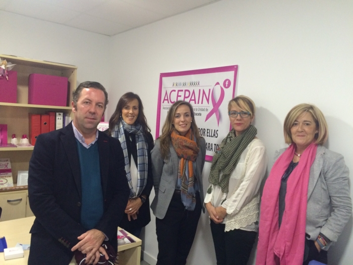 La coordinadora de la Ruta Social del PP, Carmen Navarro, junto con la concejal del Ayuntamiento de la capital, María Gil, han visitado la sede de la Asociación Costuras en la Piel en Apoyo a la Unidad de Investigación del Cáncer del Hospital de Albacete (ACEPAIN), donde han conocido, de la mano de su directiva, el trabajo que realizan en su lucha contra la enfermedad.