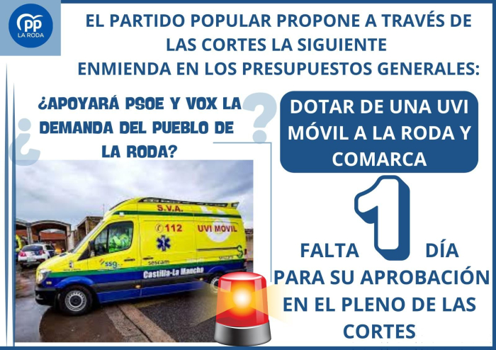 La dotación de una Uvi móvil para la Roda no es un capricho, es una necesidad con amplio respaldo social en la comarca ¿Qué votará el PSOE a la enmienda del Partido Popular?