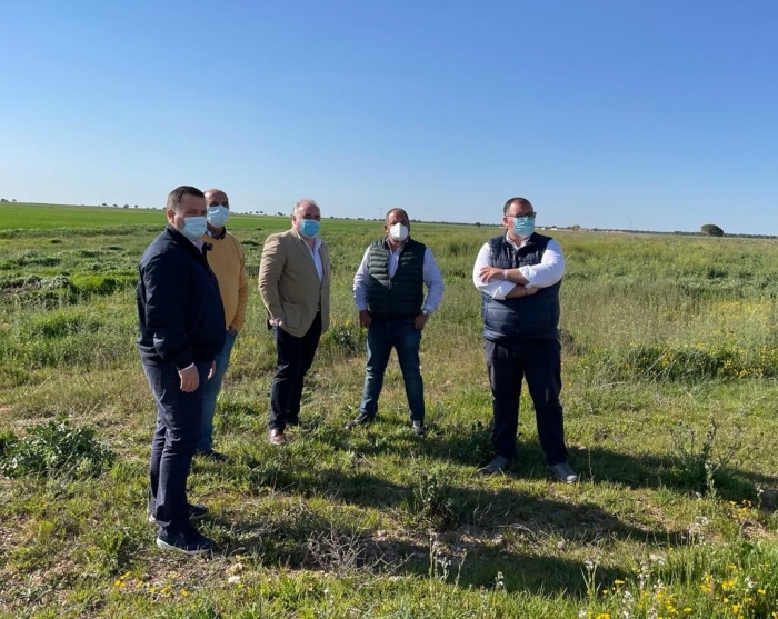 Junto a ellos, Manuel Serrano ha visitado los terrenos municipales que el Ayuntamiento de Montalvos ha puesto a disposición del mundo agrario para la futura instalación de una nave agrícola en el municipio, cuyas obras han sido adjudicadas recientemente por la Diputación provincial, asegurando que la apertura de estas instalaciones “contribuirá de manera decidida a generar empleo, revitalizar la economía y a fijar la población en el municipio”.