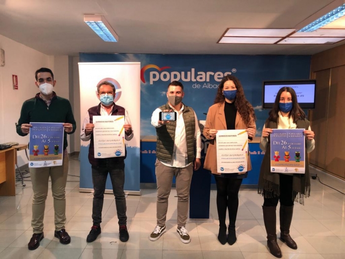 NNGG de Albacete ha presentado en Albacete la tradicional campaña navideña ‘Populares Solidarios’ para la recogida de juguetes que destinarán a familias vulnerables de la capital, en un acto en el que ha participado el portavoz del Grupo Popular en la Diputación, Antonio Martínez, junto al presidente provincial de NNGG de Albacete, Juan Carlos González, y responsables de la organización juvenil.