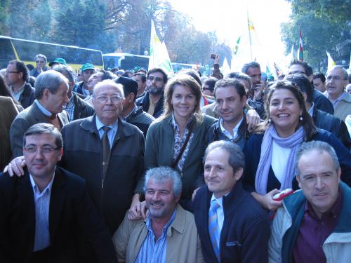 Una nutrida representación del PP de Albacete, encabezada por su presidente provincial, Marcial Marín, ha estado en las calles de Madrid junto a agricultores y ganaderos procedentes de toda Castilla-La Mancha para denunciar el "desmantelamiento" del sector, bajo el lema 'El campo se arruina, exigimos soluciones'.