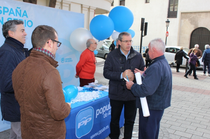El cabeza de lista al Senado, Vicente Aroca, ha participado esta mañana en la mesa informativa del Partido Popular en la Calle Tinte, donde han sido numerosos los albaceteños que han reclamado el progama electoral del Partido Popular y han seguido transmitiendo su solidaridad con Mariano Rajoy tras la agresión sufrida el pasado miércoles en Pontevedra.